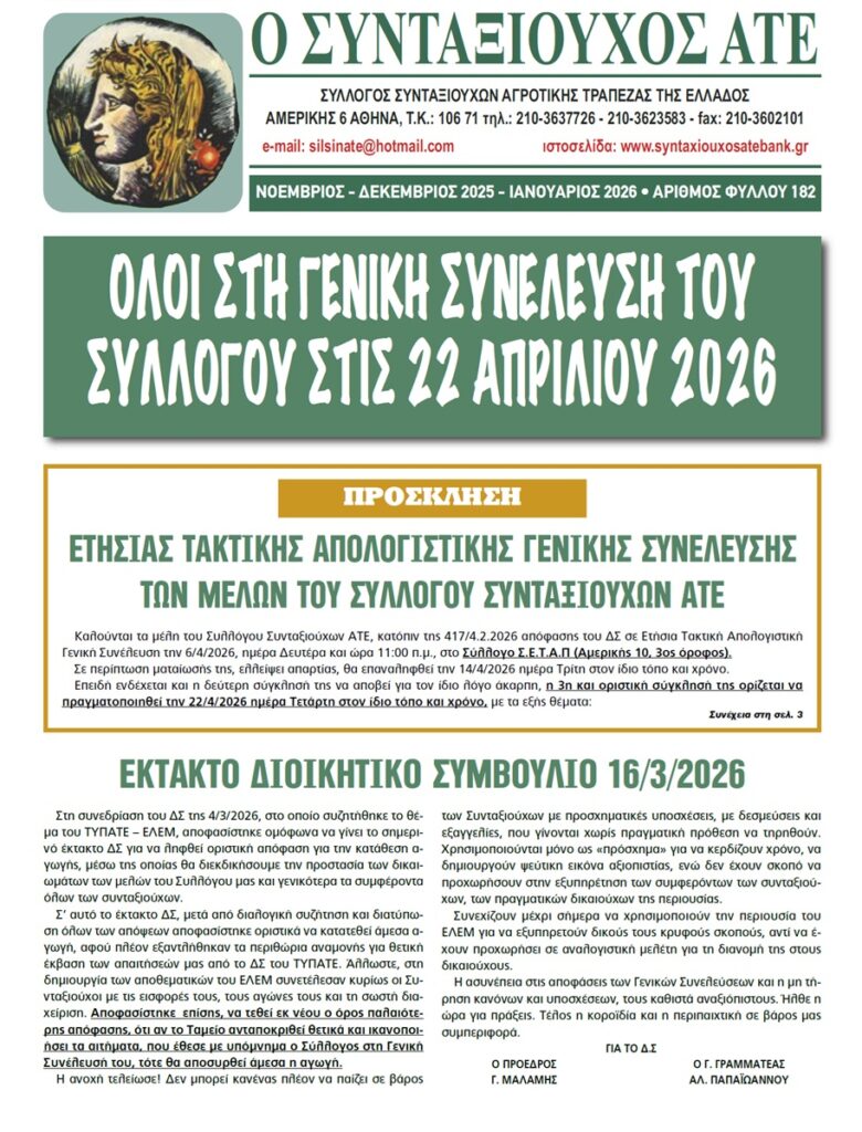 ΣΥΛΛΟΓΟΣ ΣΥΝΤΑΞΙΟΥΧΩΝ ΑΓΡΟΤΙΚΗΣ ΤΡΑΠΕΖΑΣ ΤΗΣ ΕΛΛΑΔΟΣ
