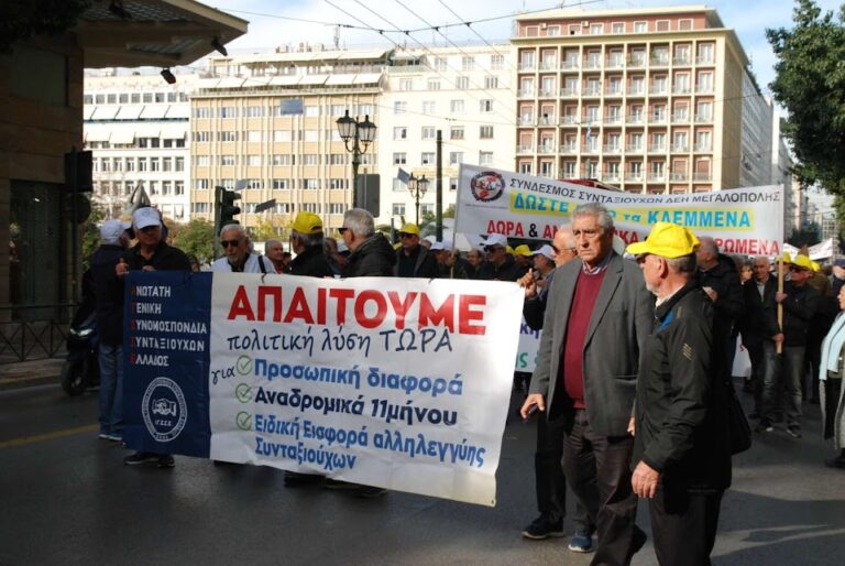 Χιλιάδες συνταξιούχοι, διαδήλωσαν χθες στους δρόμους της Αθήνας, καταγγέλλοντας την κυβερνητική πολιτική και τον νέο προϋπολογισμό, που δεν προβλέπει απολύτως τίποτα για τους Συνταξιούχους και τους οδηγεί σε μεγαλύτερη φτώχεια και αδυναμία αντιμετώπισης των βασικών καθημερινών αναγκών σε φάρμακα, γιατρούς…